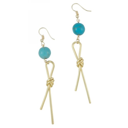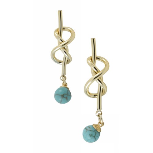 Σκουλαρίκια Με πέτρα Πέτρα Χαολίτης Τιρκουάζ με χρυσαφί μεταλλικό μοτίφ σε σχήμα κόμπου..