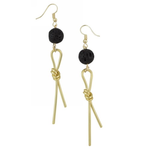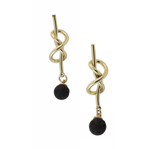 Σκουλαρίκια Με πέτρα Πέτρα Χαολίτης λάβα με χρυσαφί μεταλλικό μοτίφ σε σχήμα κόμπου..