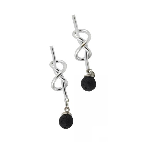 Σκουλαρίκια Με πέτρα Πέτρα Λάβα Λάβα με ασημί σύρμα+μικρή φούντα..