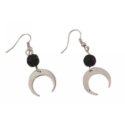 Σκουλαρίκια Με πέτρα Πέτρα Λάβα Λάβα με μοτίφ ασημί μισοφέγγαρο..