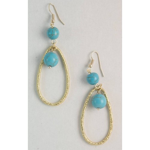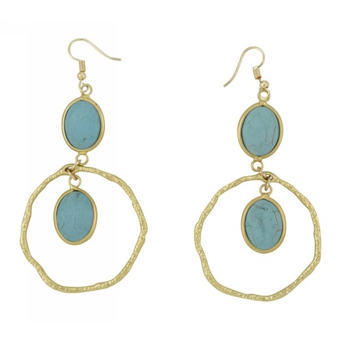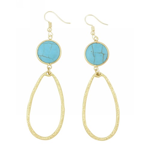 Σκουλαρίκια Με πέτρα Πέτρα Τυρκουάζ Τυρκουάζ στρόγγυλη σε καστόνι με οβάλ μεταλλικό μοτίφ..