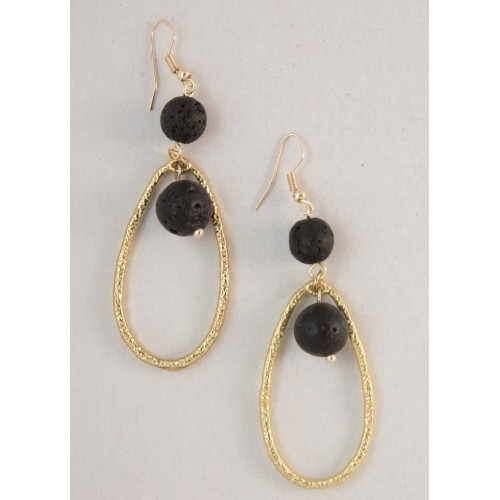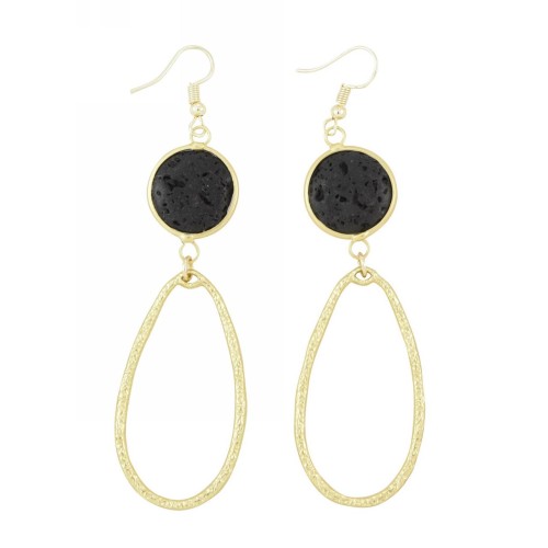 Σκουλαρίκια Με πέτρα Πέτρα Λάβα Λάβα  στρόγγυλη σε καστόνι με οβάλ μεταλλικό μοτίφ..