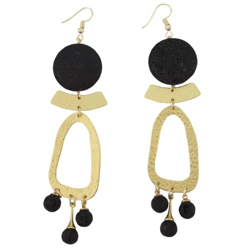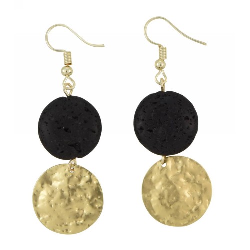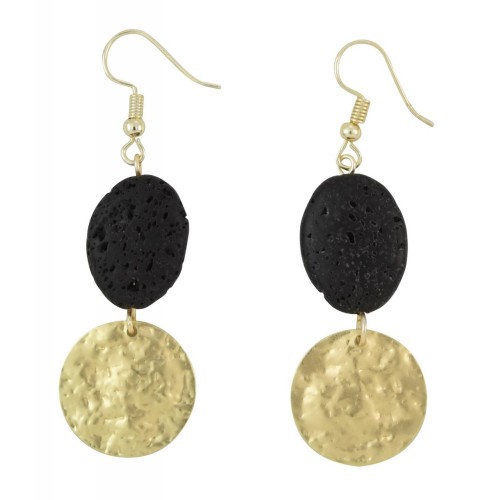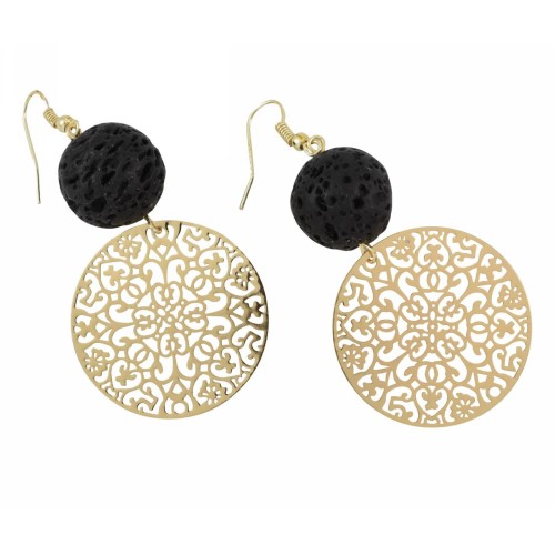 Σκουλαρίκια Με πέτρα Πέτρα Λάβα Λάβα  στρόγγυλη με μεταλλικά μοτίφ..