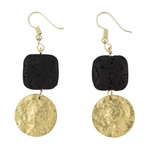 Σκουλαρίκια Με πέτρα Πέτρα Λάβα Λάβα τετράγωνη με στρόγγυλο μεταλλικό μοτίφ..