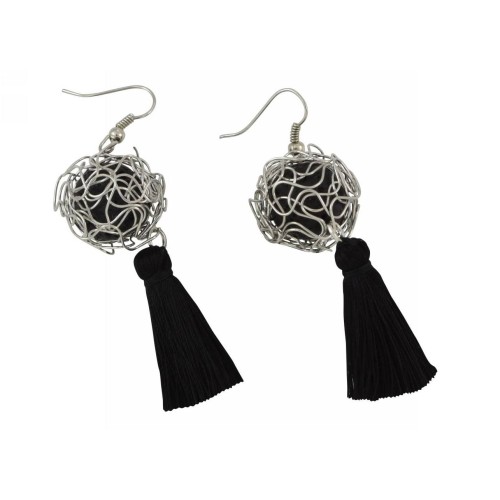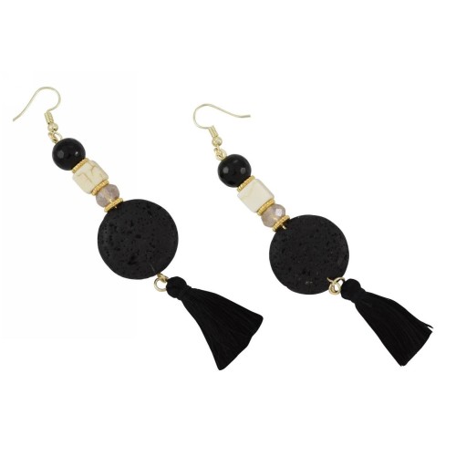 Σκουλαρίκια Με πέτρα Πέτρα Μαύρο Μαύρο με χρυσαφί σύρμα+μικρή φούντα..