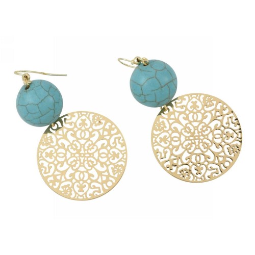 Σκουλαρίκια Με πέτρα Πέτρα Τυρκουάζ Τυρκουάζ με στρόγγυλο μεγάλο μοτίφ..