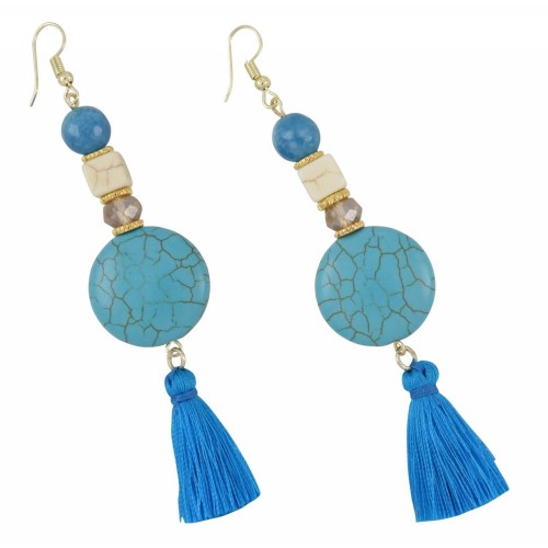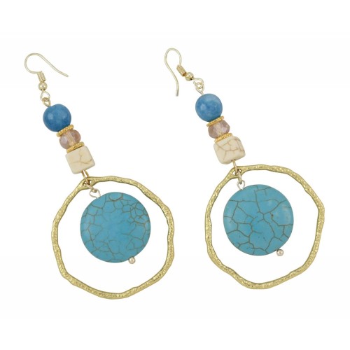 Σκουλαρίκια Με πέτρα Πέτρα Τυρκουάζ Τυρκουάζ εντός στρόγγυλου μοτίφ, τυρκουάζ σε κύβο, εκρού πέτρα+..