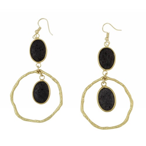 Σκουλαρίκια Με πέτρα Πέτρα Λάβα Λάβα οβάλ με στρόγγυλο μεταλλικό μοτίφ..