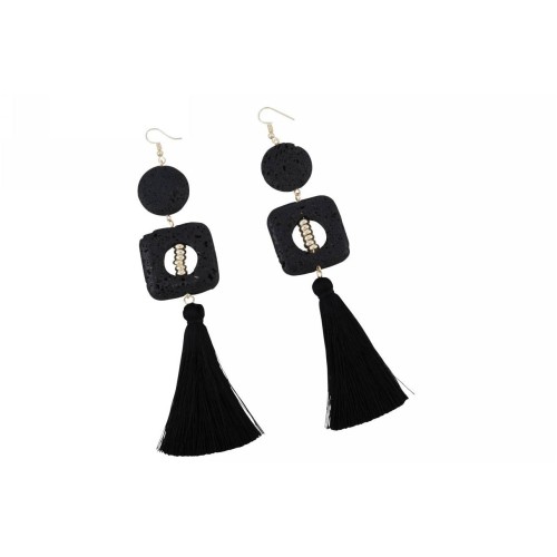 Σκουλαρίκια Με πέτρα Πέτρα Λάβα Λάβα στρόγγυλη, τετράγωνο επίπεδο σχέδιο με οπή+μεγάλη φούντα..