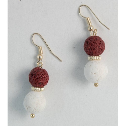 Σκουλαρίκια Με πέτρα Πέτρα Λάβα Με λευκή+μπορντό τεχνητή ηφαιστιακή πέτρα+ροδέλα..