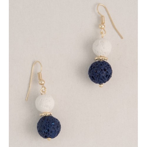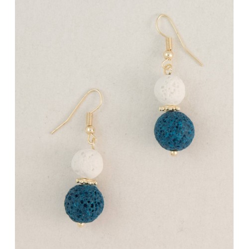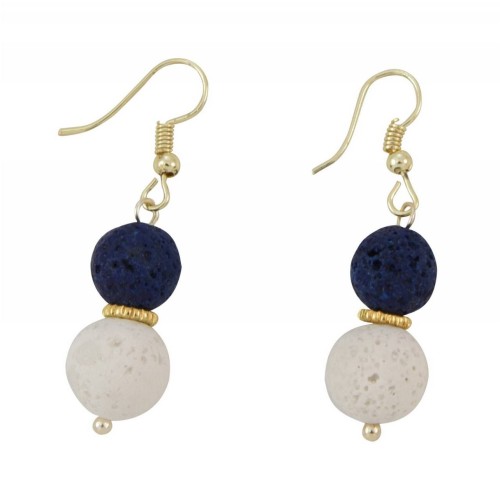 Σκουλαρίκια Με πέτρα Πέτρα Λάβα Με λευκή+μπλε τεχνητή ηφαιστιακή πέτρα+ροδέλα..