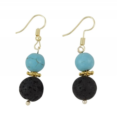 Σκουλαρίκια Με πέτρα Πέτρα Λάβα Τυρκουάζ με γαντζάκι μπίλια..