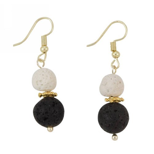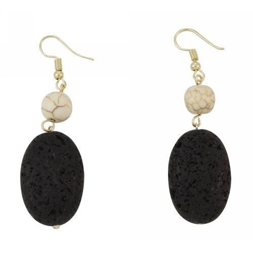 Σκουλαρίκια Με πέτρα Πέτρα Λάβα λευκό με γαντζάκι μπίλια..