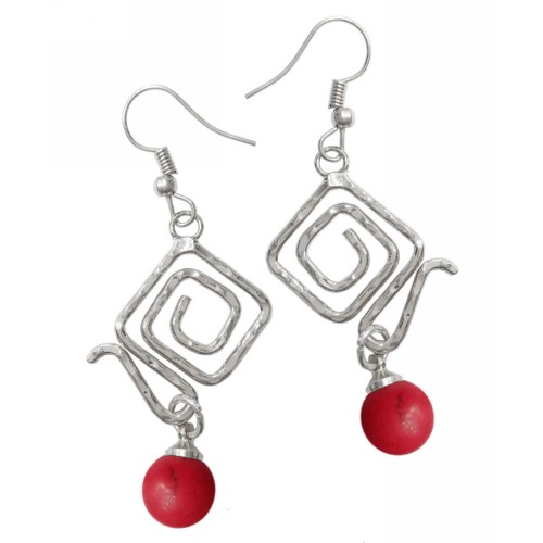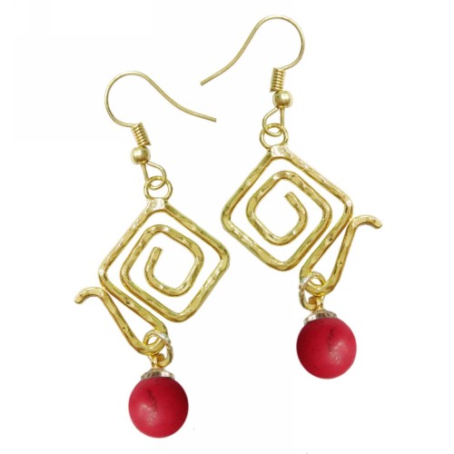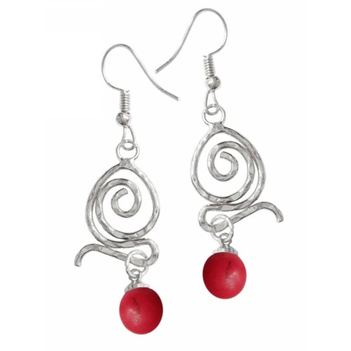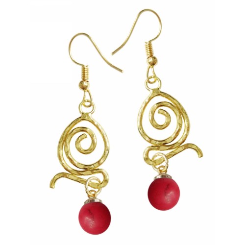 Σκουλαρίκια Με πέτρα Πέτρα Κόκκινο με κυκλική μεταλλική σφύρα..