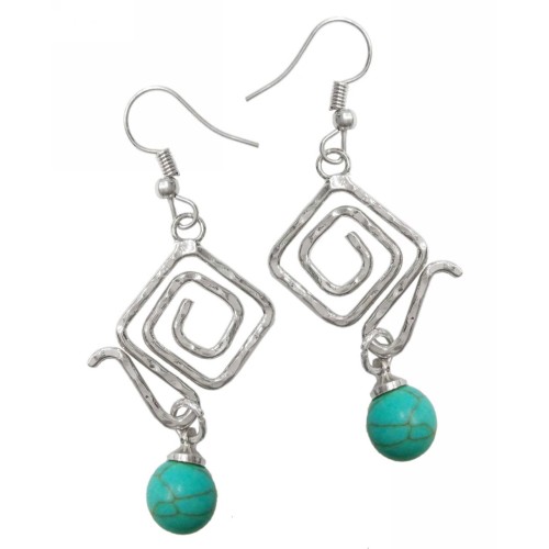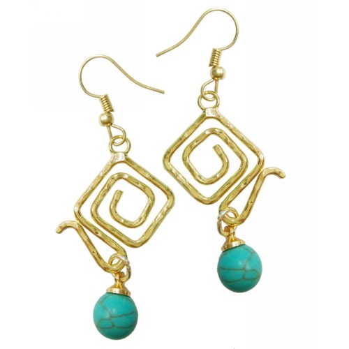 Σκουλαρίκια Με πέτρα Πέτρα Τιρκουάζ  με τετράγωνη μεταλλική σφύρα..