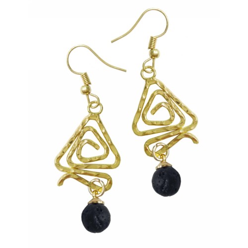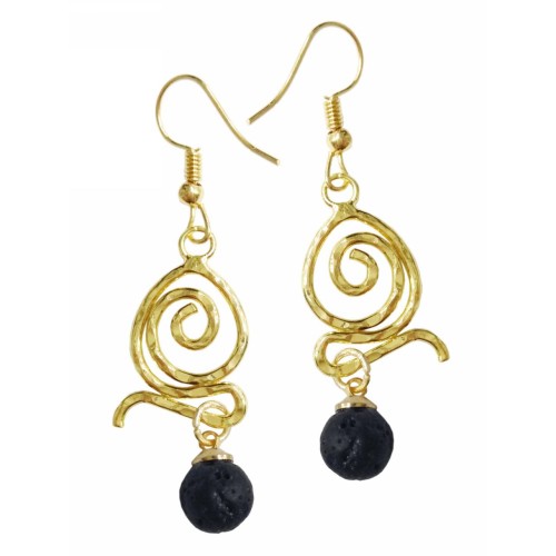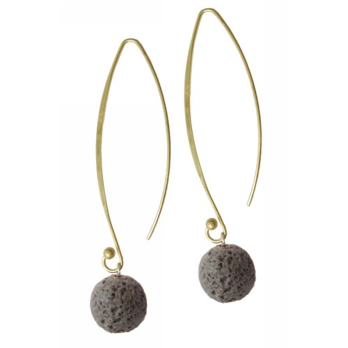 Σκουλαρίκια Με πέτρα Πέτρα Λάβα καφέ με γαντζάκι μπίλια..