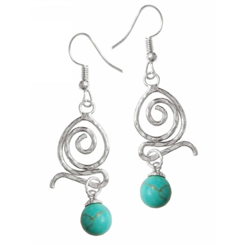 Σκουλαρίκια Με πέτρα Πέτρα τιρκουάζ με κυκλική μεταλλική σφύρα..
