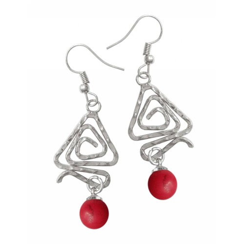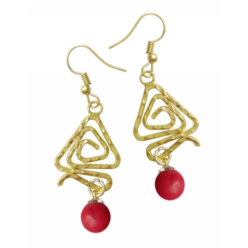 Σκουλαρίκια Με πέτρα Πέτρα Κόκκινο με τρίγωνη μεταλλική σφύρα..