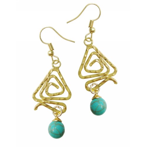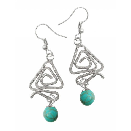 Σκουλαρίκια Με πέτρα Πέτρα τιρκουάζ με τρίγωνη μεταλλική σφύρα..