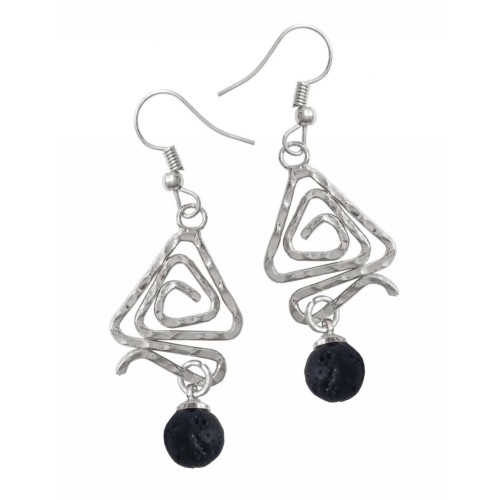 Σκουλαρίκια Με πέτρα Πέτρα μαύρο με τρίγωνη μεταλλική σφύρα..