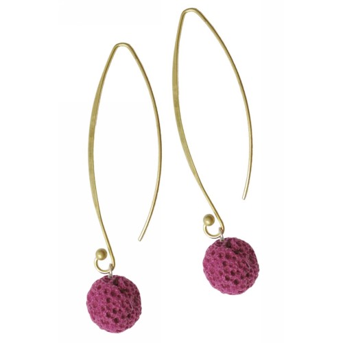 Σκουλαρίκια Με πέτρα Πέτρα Λάβα φούξια με γαντζάκι μπίλια..