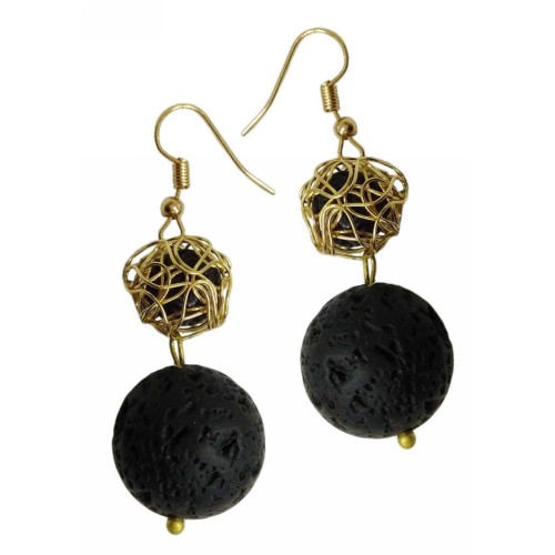 Σκουλαρίκια Με πέτρα Πέτρα Λάβα Λάβα+μικρή λάβα σε μπρούτζινο πλέγμα..