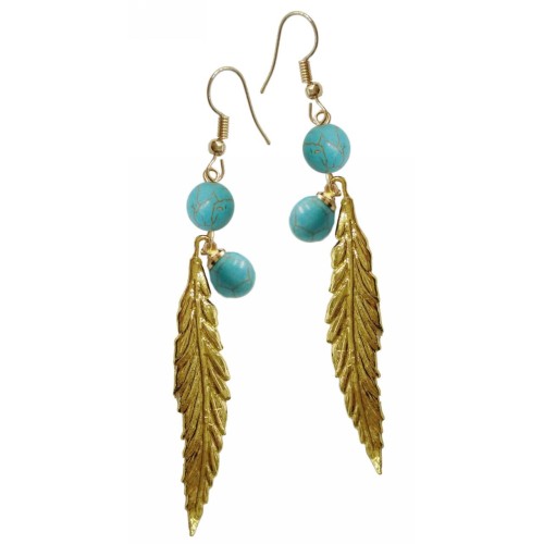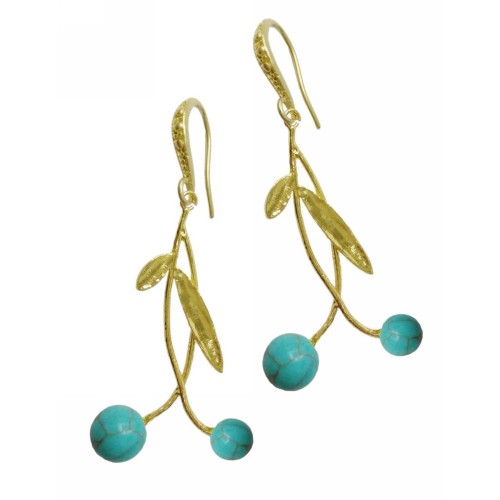 Σκουλαρίκια Με πέτρα Πέτρα Τυρκουάζ Τυρκουάζ με μπρούτζινο φύλλο..
