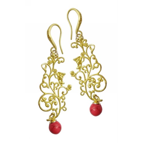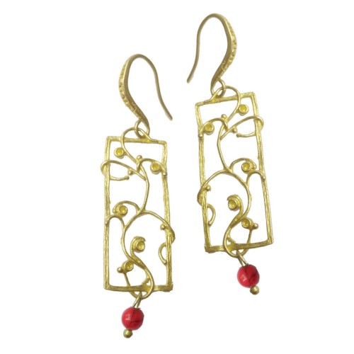 Σκουλαρίκια Με πέτρα Πέτρα κόκκινο με μπρούτζινο σχέδιο..