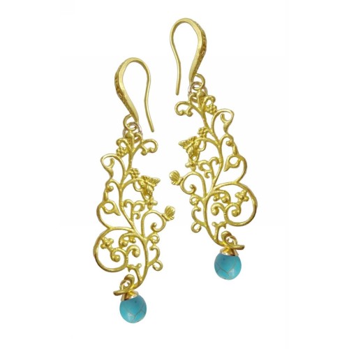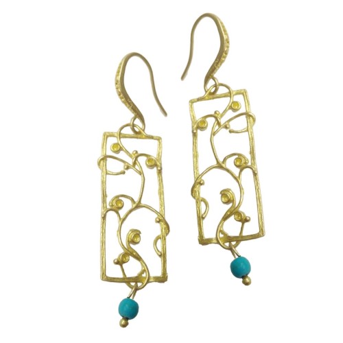 Σκουλαρίκια Με πέτρα Πέτρα τιρκουάζ με μπρούτζινο σχέδιο..