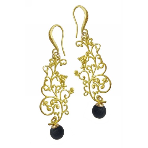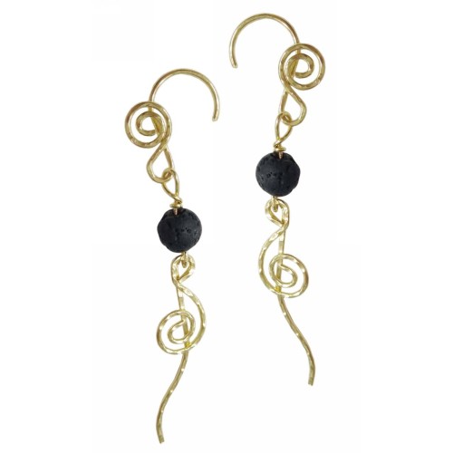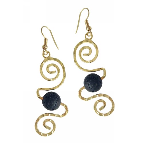 Σκουλαρίκια Με πέτρα Πέτρα Λάβα Λάβα με μακρύ μπρούτζινο σχέδιο..