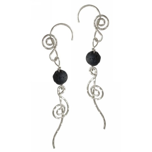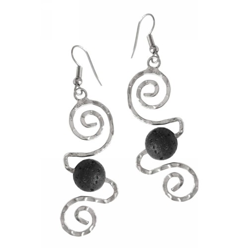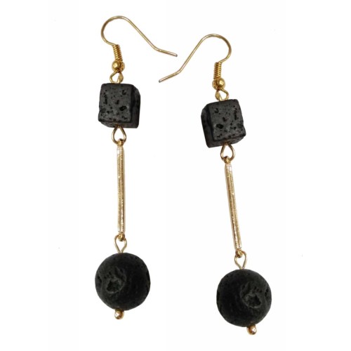Σκουλαρίκια Με πέτρα Πέτρα Λάβα μαύρο με γαντζάκι μπίλια..