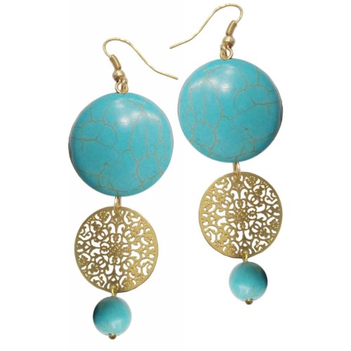 Σκουλαρίκια Με πέτρα Πέτρα Τυρκουάζ Με μεταλλικό μοτίφ..