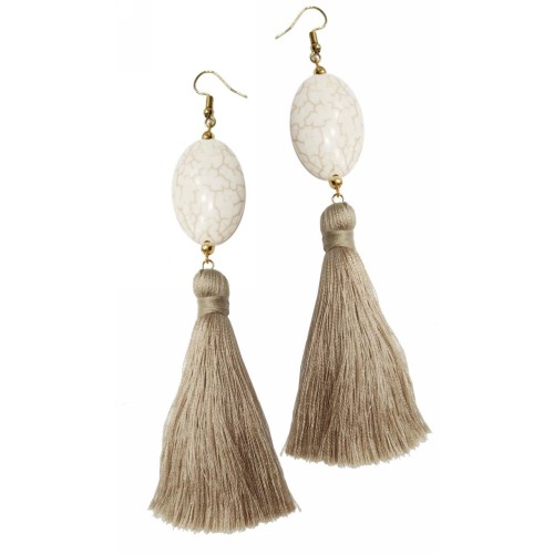 Σκουλαρίκια Με πέτρα Πέτρα Χαολίτης Εκρού και φούντα..
