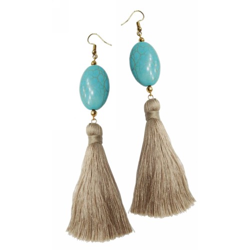 Σκουλαρίκια Με πέτρα Πέτρα Χαολίτης τιρκουάζ και φούντα..