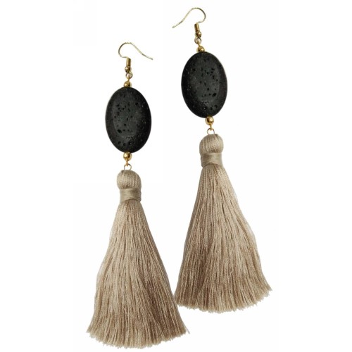 Σκουλαρίκια Με πέτρα Πέτρα Λάβα Λάβα και μαύρη φούντα σε μπρούτζινο κύκλο..