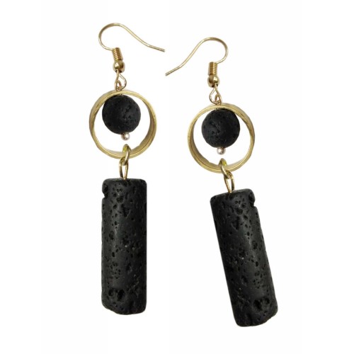 Σκουλαρίκια Με πέτρα Πέτρα Λάβα Σε στρόγγυλο μπρούτζινο+μακρόστενη λάβα..