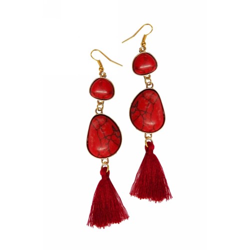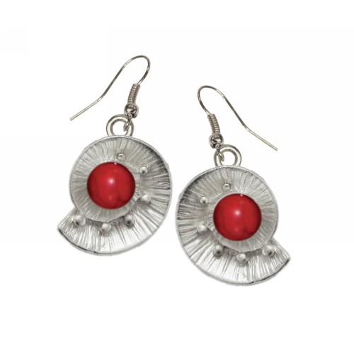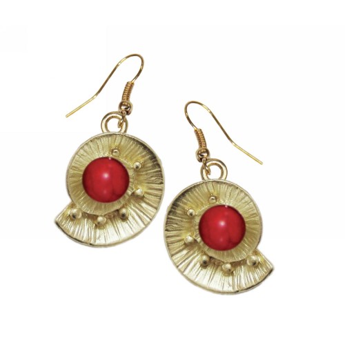 Kostibas 3014-343, Σκουλαρίκια, Πέτρα, Μεταλλικό, ΤΕ, Κόκκινο