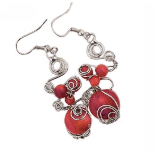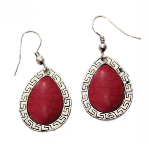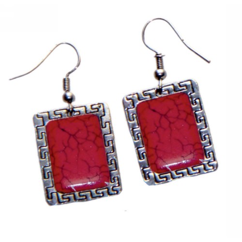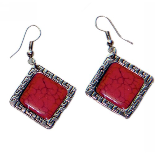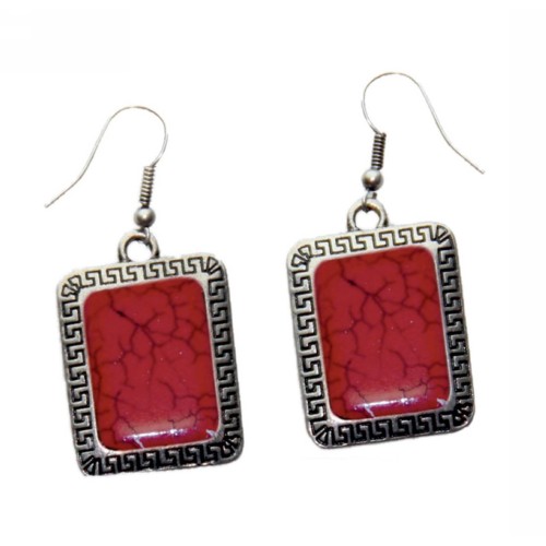 Kostibas 3014-103E, Σκουλαρίκια, Πέτρα, Μεταλλικό, ΤΕ, Κόκκινο