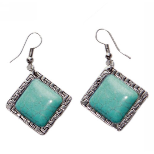 Σκουλαρίκια Με πέτρα Ατσάλι Τυρκουάζ Σε 2 μεγέθη..