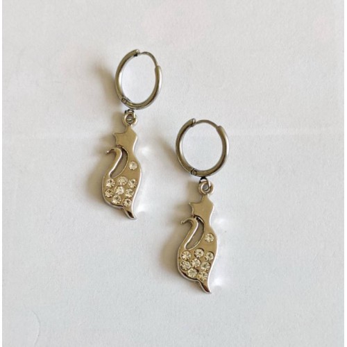 Σκουλαρίκια Κρίκοι Ατσάλι Ατσάλι 304, με zinc-alloy μοτίφ γάτα+strass..