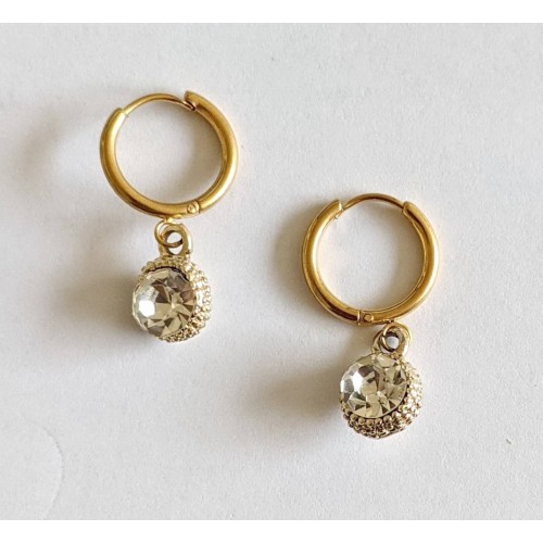 Σκουλαρίκια Κρίκοι Ατσάλι Ατσάλι 304, με στρας στρόγγυλο μοτίφ..