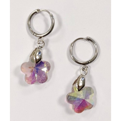 Σκουλαρίκια Κρίκοι Με μοτίφ Ατσάλι Με πρισματικό μοτίφ λουλουδάκι..