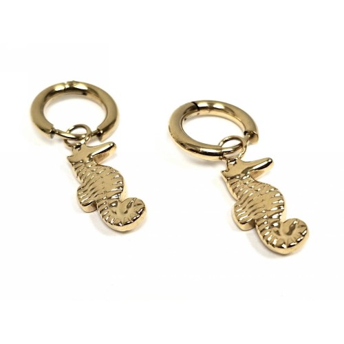 Σκουλαρίκια Ατσάλι 316L, κρίκος με ιππόκαμπο σε χρώμα Χρυσαφί..