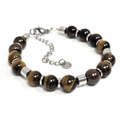 Βραχιόλι Πέτρα ατσάλι αλυσίδα με μάτι τίγρης και στοιχεία από αιματίτη σε χρώμα Ασημί..