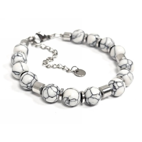 Βραχιόλι Πέτρα ατσάλι αλυσίδα με τυρκουάζ και στοιχεία από αιματίτη σε χρώμα Ασημί..