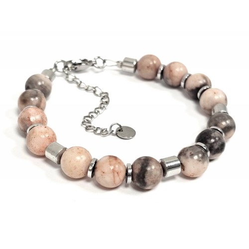 Βραχιόλι Πέτρα ατσάλι αλυσίδα με ημιπολύτιμες πέτρες και στοιχεία από αιματίτη σε χρώμα Ασημί..