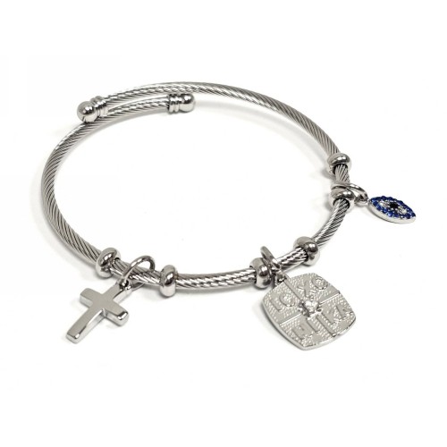 Βραχιόλι Ατσάλι 316L, με σταυρό , μαρτυρικό , μάτι και στρας σε χρώμα Ασημί..