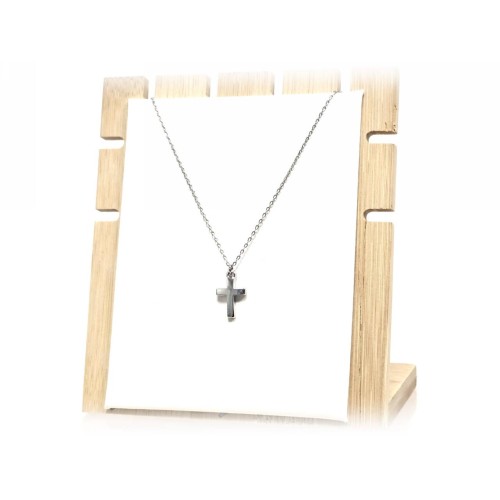 Κολιέ Ατσάλι 316L, αλυσίδα με σταυρό και στρας σε χρώμα Ασημί..