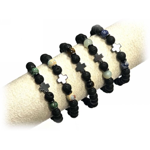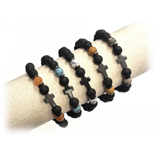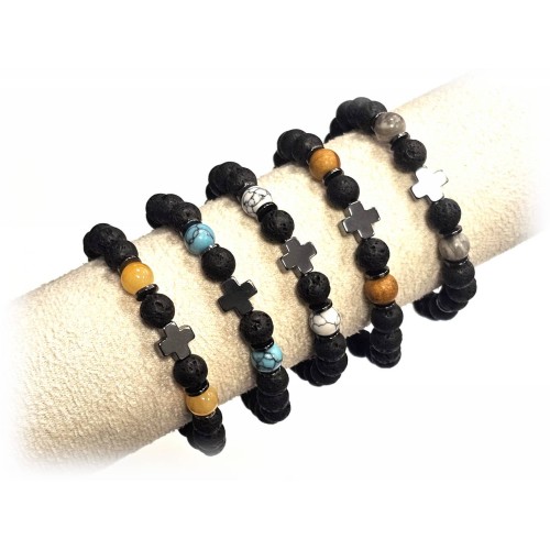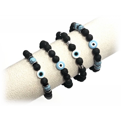 Αντρικό Βραχιόλι Πέτρα λάστιχο, 8# λάβα, μάτι και ατσάλινα στοιχεία Πακ.(16Τεμ.)..
