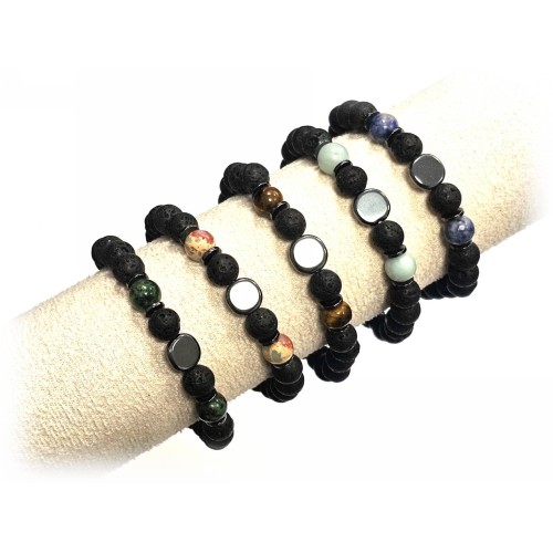 Αντρικό Βραχιόλι Πέτρα λάστιχο, 8# λάβα, πέτρες και στοιχεία από αιματίτη Πακ.(20Τεμ.)..